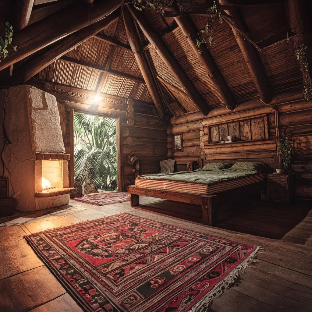 The Top Bungalow at Aldeia Akasha offers a warm and intimate space designed for deep rest and comfort.
